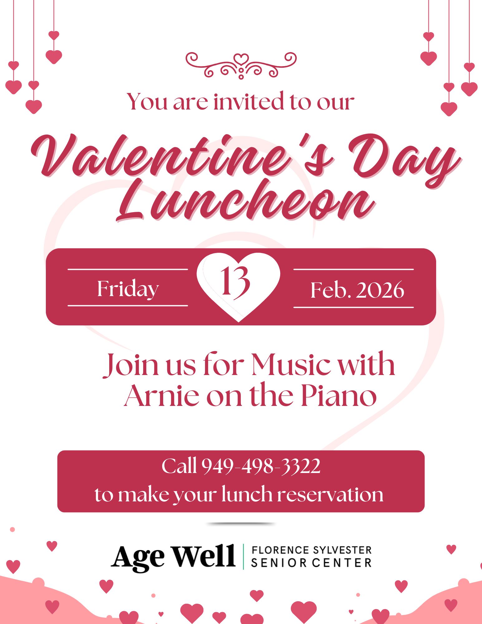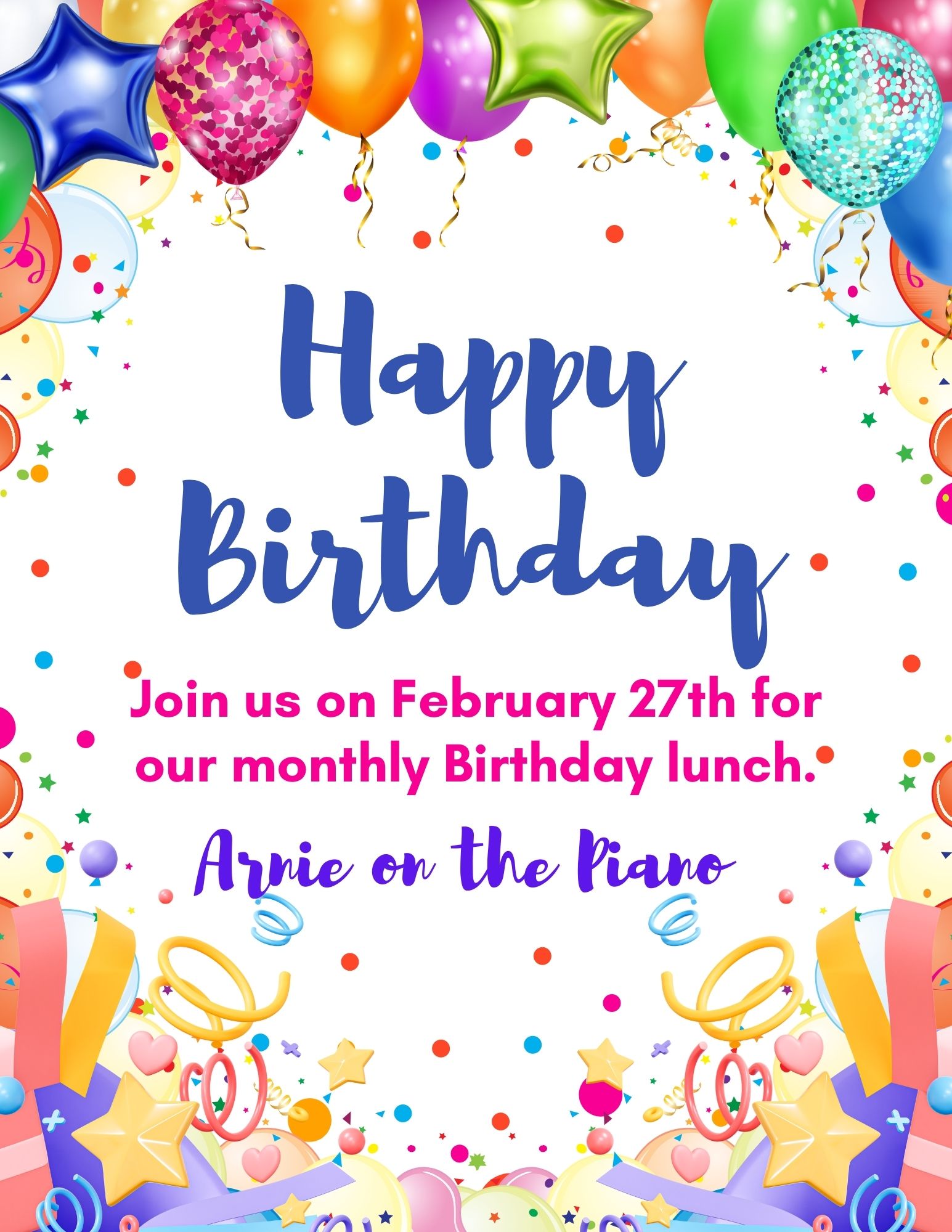 Join us in celebrating February birthdays with a special lunch and live music on the piano.