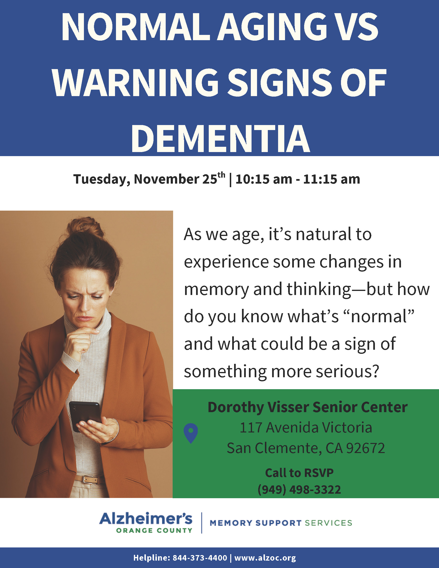 - Health: Blood Pressure Clinic, Coffee, Donuts & Medicare, AlzOC Caregiver Support