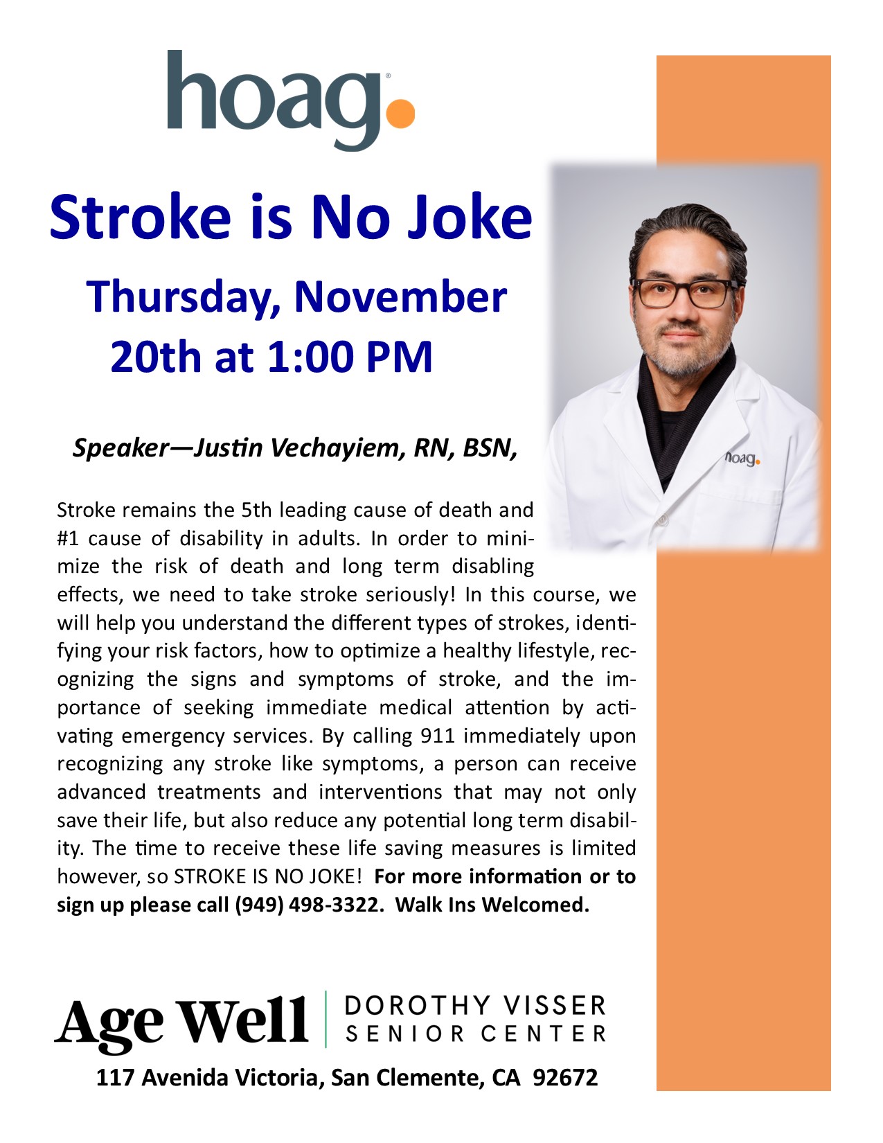 - Support: HICCAP, Caregiver Support, Attorney, Stroke no Joke, VA Social