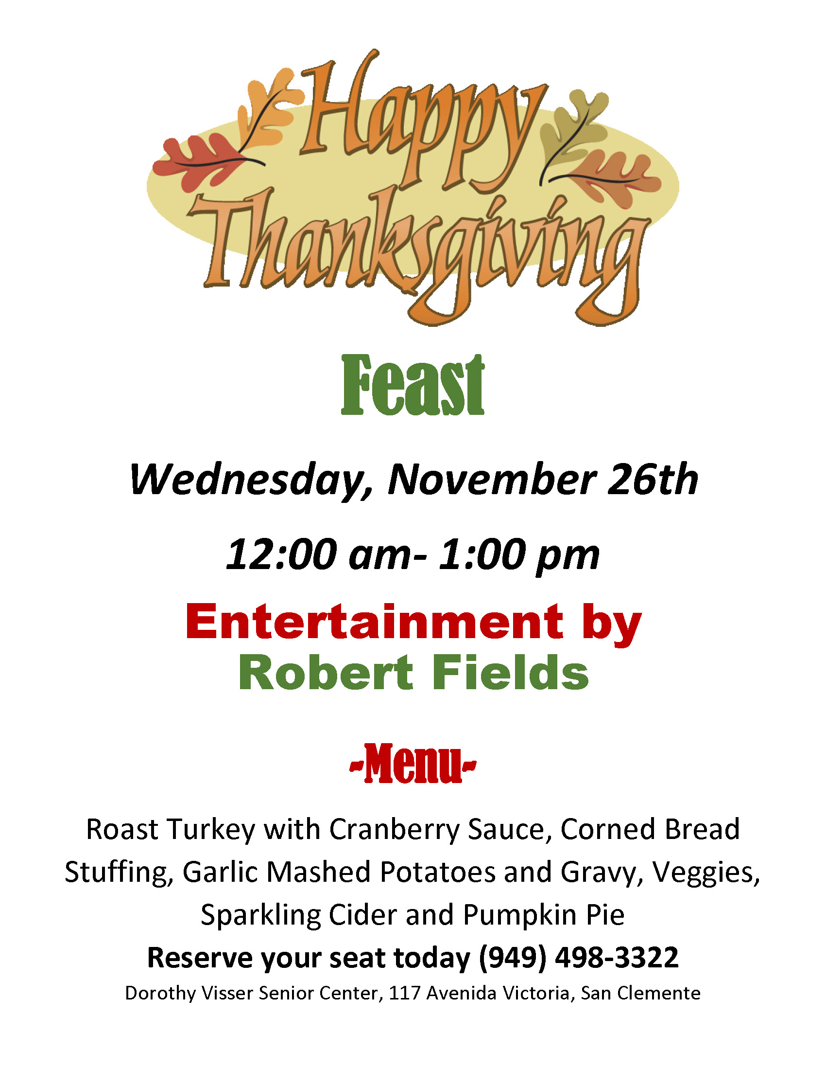 Enjoy live music, food, and fun as we celebrate Thanksgiving together. Luncheon starts at 11:30 AM, Wednesday, November 26.